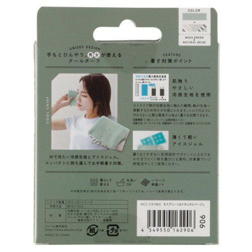 ■カラー:モスグリーン×ナチュラルベージュ ■サイズ:約190×100mm ■素材:冷感生地:レーヨン52%、ナイロン48% / タオル生地:綿75%、ポリエステル25% / ジェル:PVC(袋)、グリセリン、水、高吸水性ポリマー、防腐剤 ■重量:本体:約10g、ジェル:約80g ■生産国:中国 備考※メーカー取り寄せ商品となりますので、ご注文後の注文キャンセルはお承りできません。