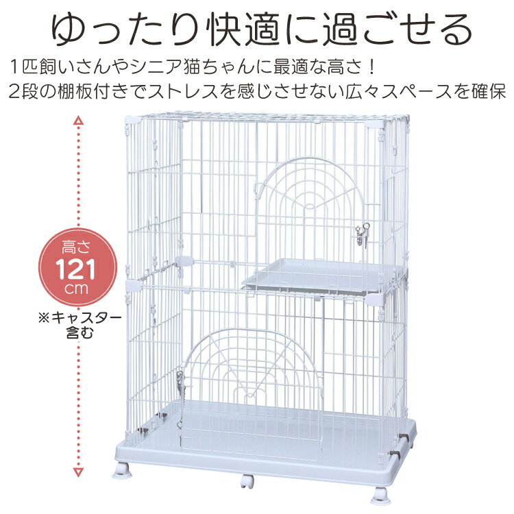 ■商品サイズ(約):幅93×奥行63×高さ121cm(キャスター込)■商品重量(約):13.56kg■商品内寸(約):幅82×奥行52.5cm■耐荷重(約): 8kg(中間トレー)■中間トレーサイズ(約): 幅45×奥行52cm■入口サイズ(約) 小:幅35×高さ40cm 大:幅52×高さ41cm■材質:スチール(エポキシ粉体塗装)、ポリプロピレン、棚板PVC樹脂■適合商品:ネコトイレNE-490 ▼▽当店のキャットケージ人気ランキング▽▼