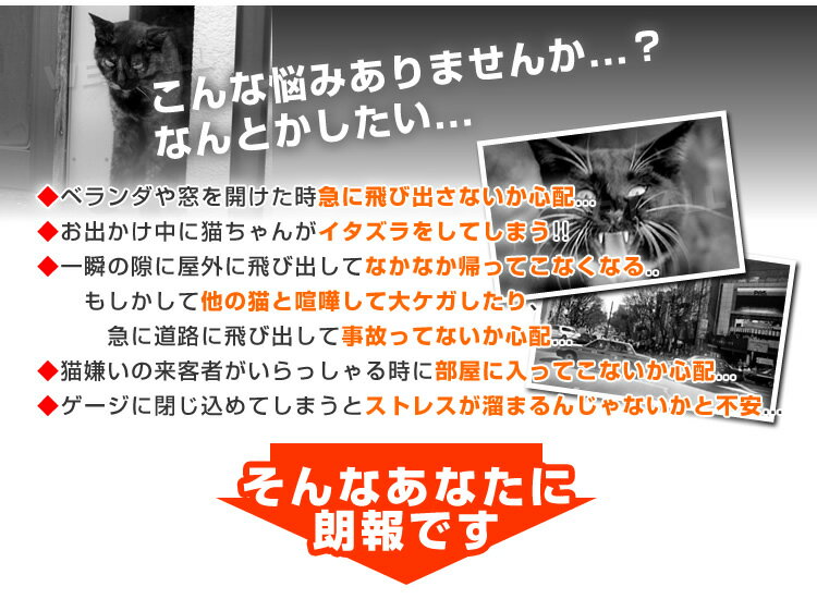 ・生後間もない幼猫にご使用の場合、フェンスの隙間から頭や体が出る恐れがありますので注意してください。