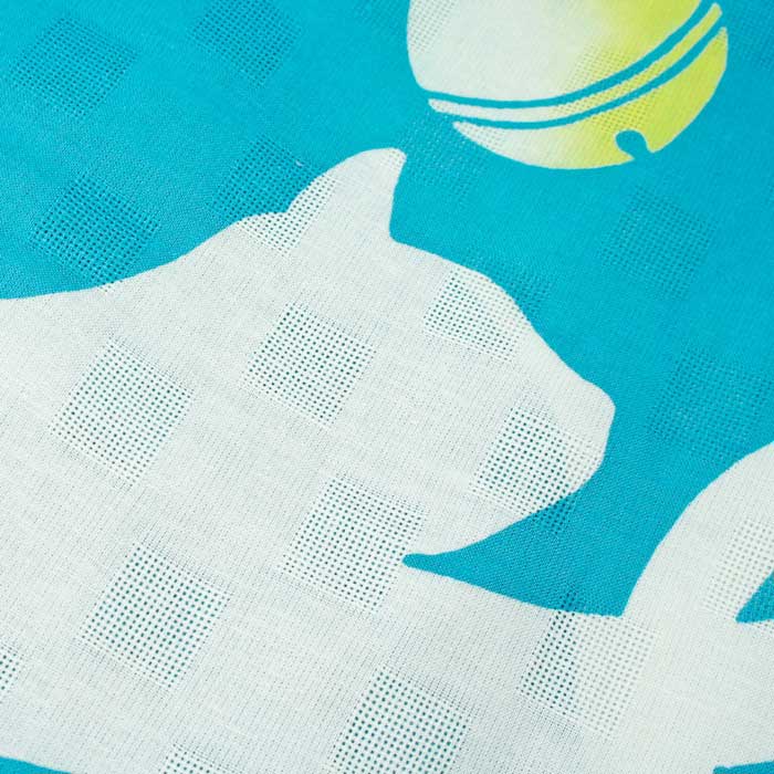 ゆかた:水色地にネコ柄 【素 材】 市松ジャガード 綿85% 麻15% 変わり織 【サイズ】 身丈163cm 袖丈49cm 裄丈67cm