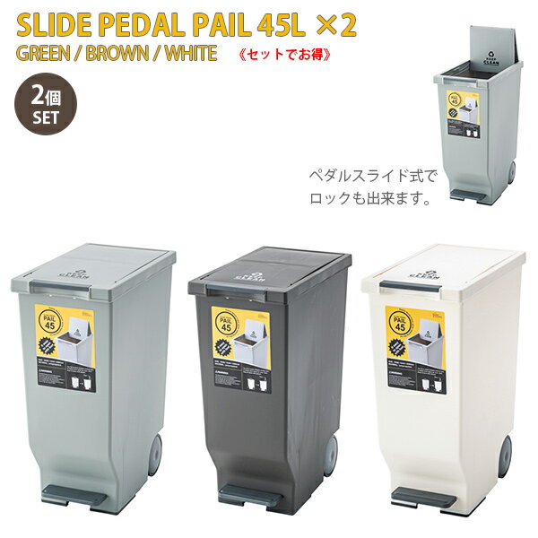 【北海道・沖縄 配送不可】 スライドペダルペール45L 2個セット ごみ箱 エコボックス トラッシュボックス くず入れ インテリア デザイン収納 おしゃれ ふた付き 45リットル 分別 エコ ペダル スライド式 一般家庭用サイズ azm