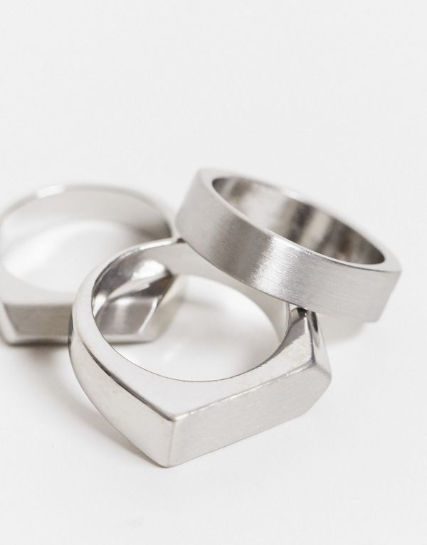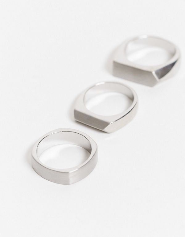 エイソス ASOS asos ブラッシュドシルバートーンの角度のあるデザインのASOSDESIGNリングパック アクセサリー メンズ 男性 インポートブランド 小さいサイズから大きいサイズまで