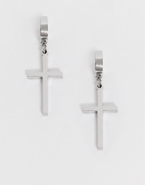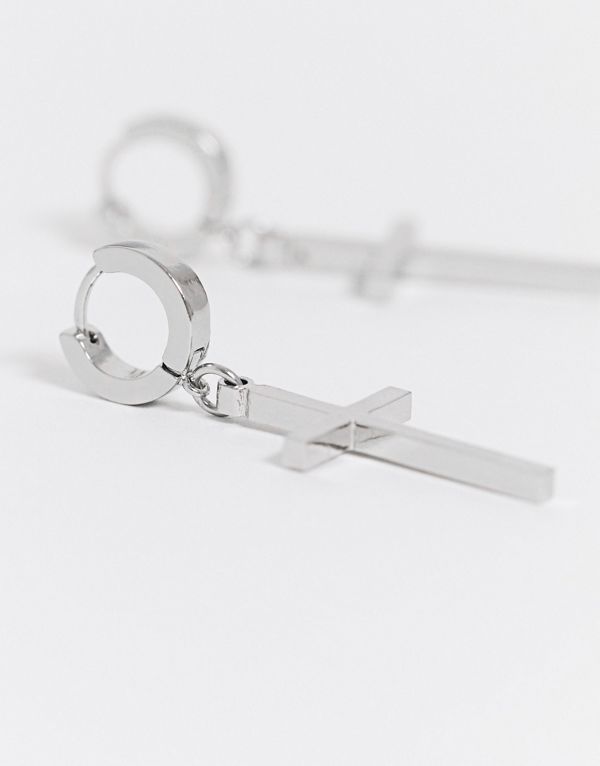 エイソス ASOS asos ASOS DESIGNシルバートーンのクロスチャーム付き7mmフープピアス アクセサリー メンズ 男性 インポートブランド